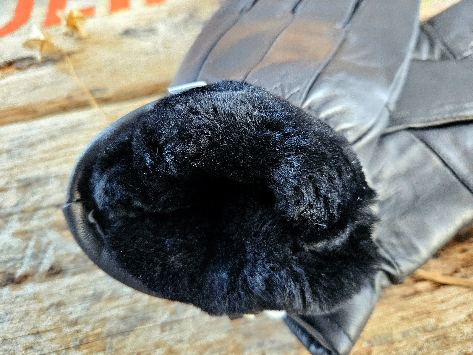 Nahkkindad meestele mustast lambanahast ja seest naturaalse pügatud ja mustaks värvitud lambakarvaga.