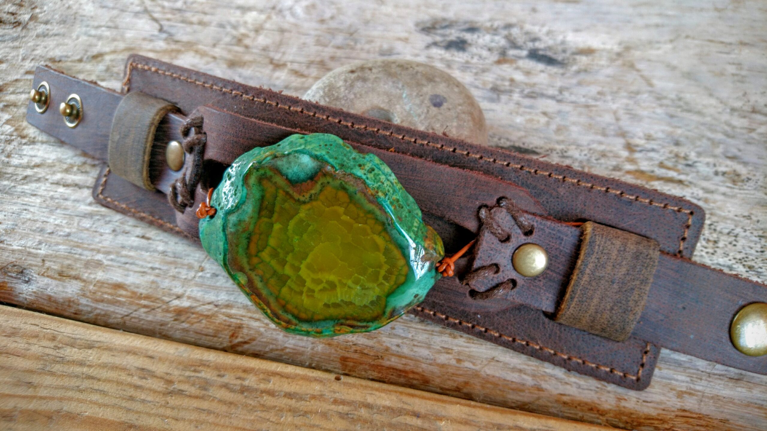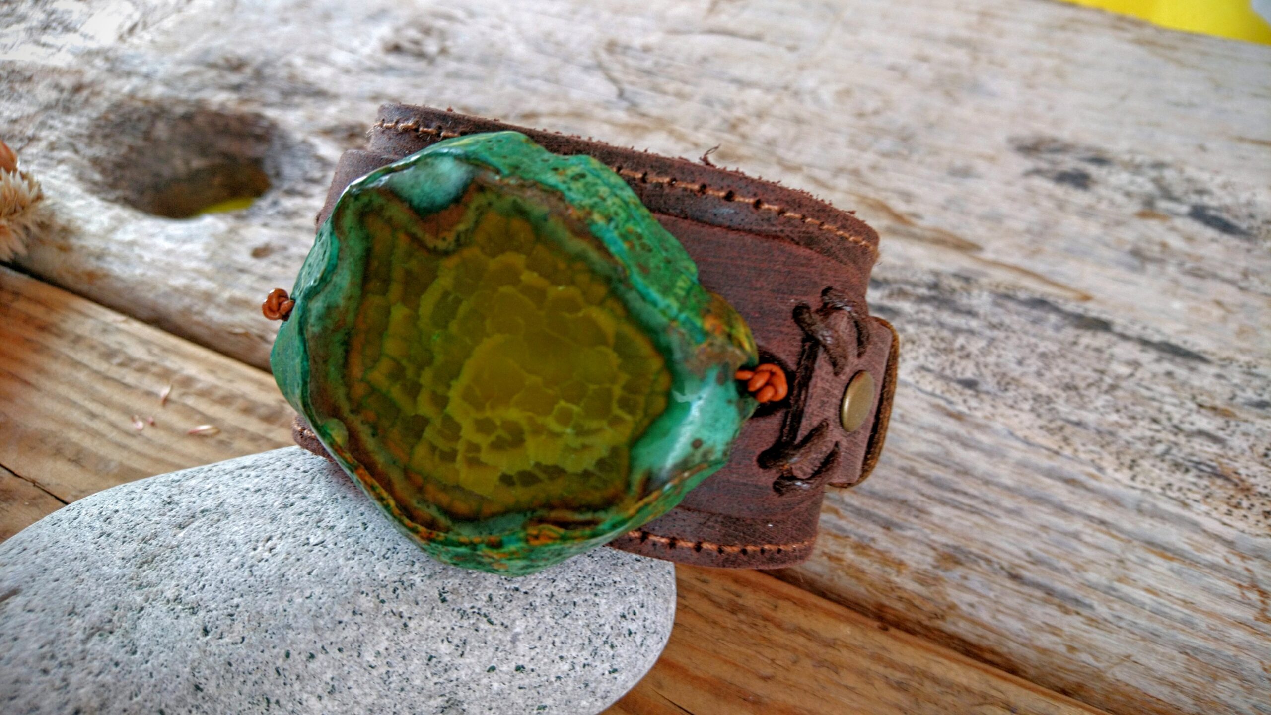 Nahast käerihm/käevõru suure ahhaat kristalli lõikega