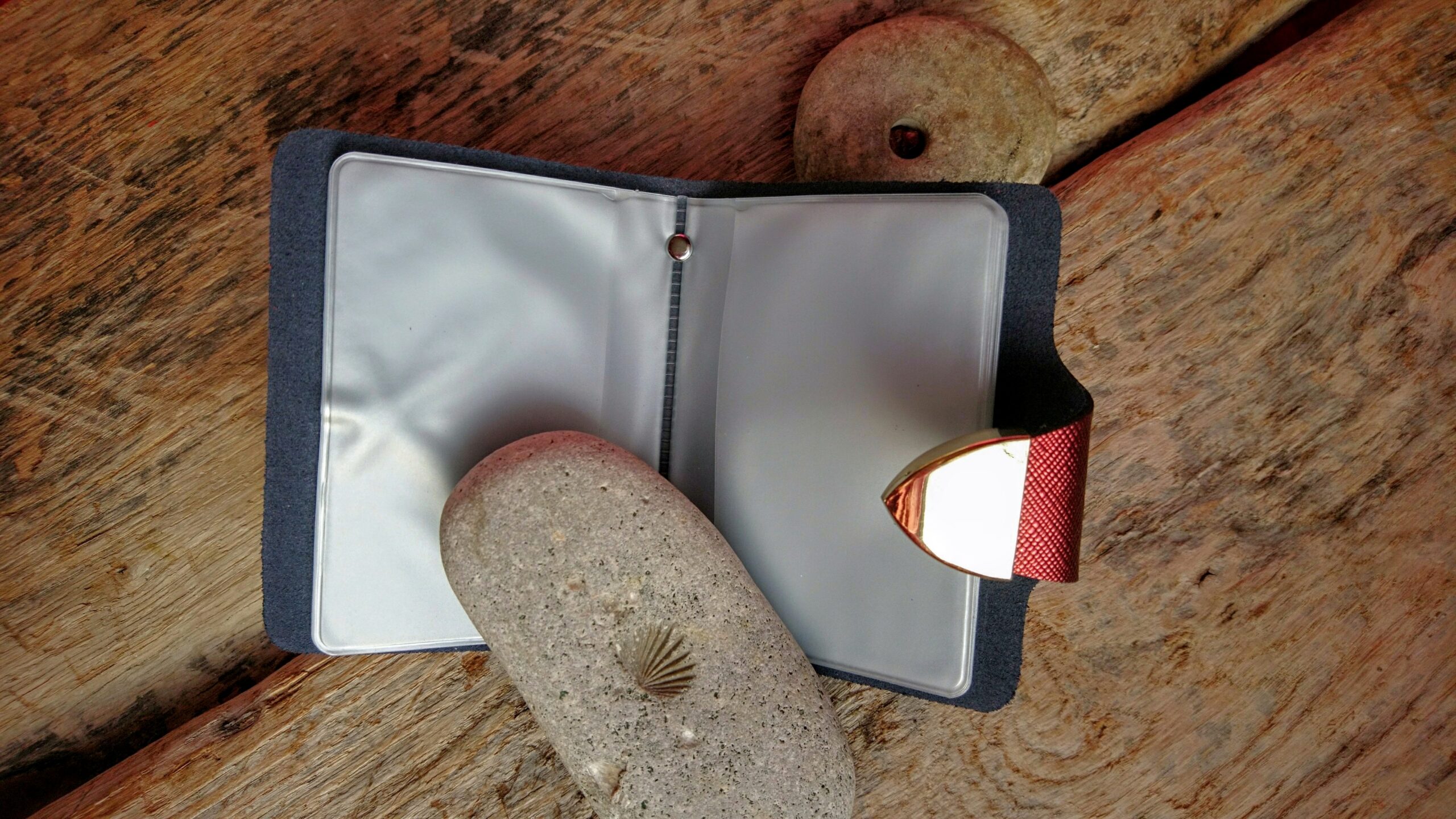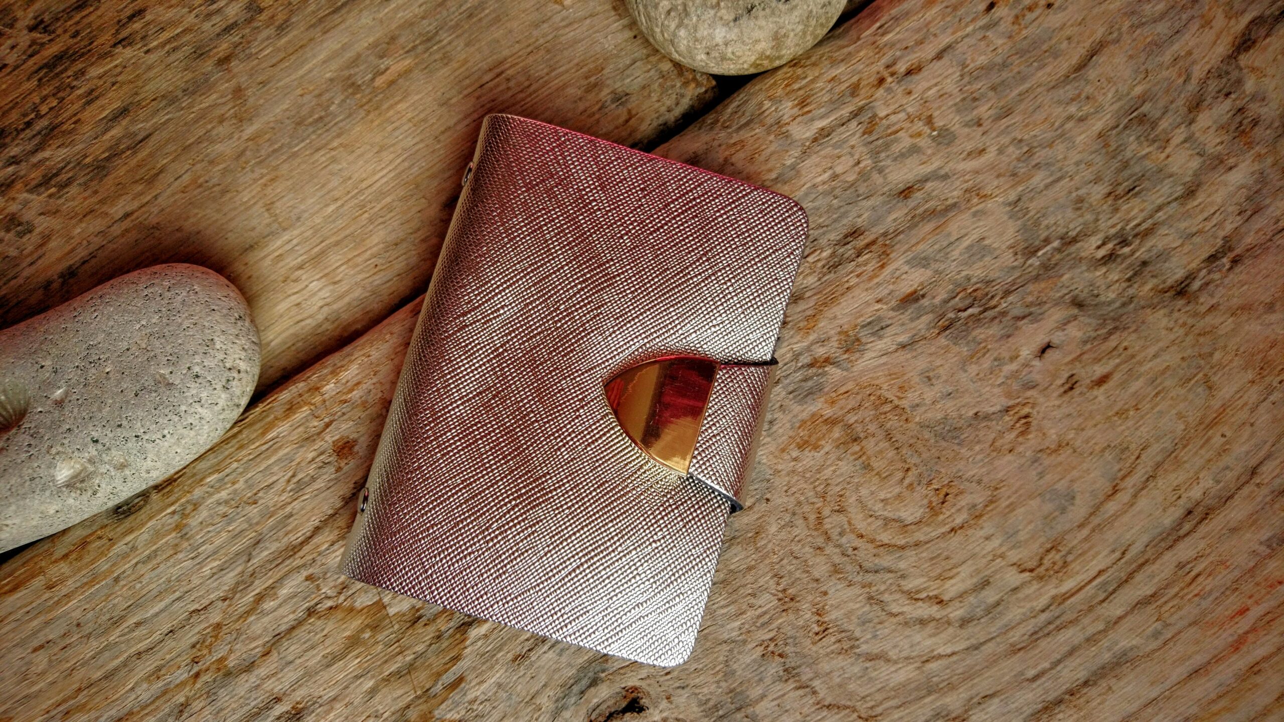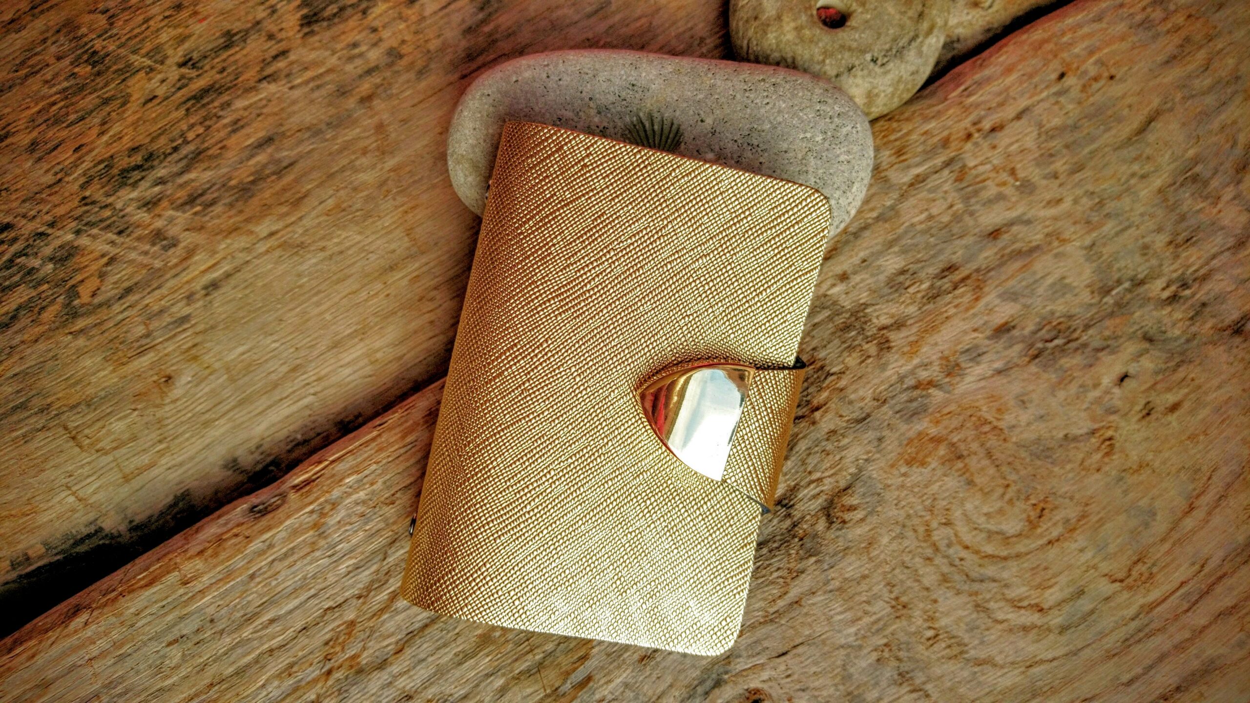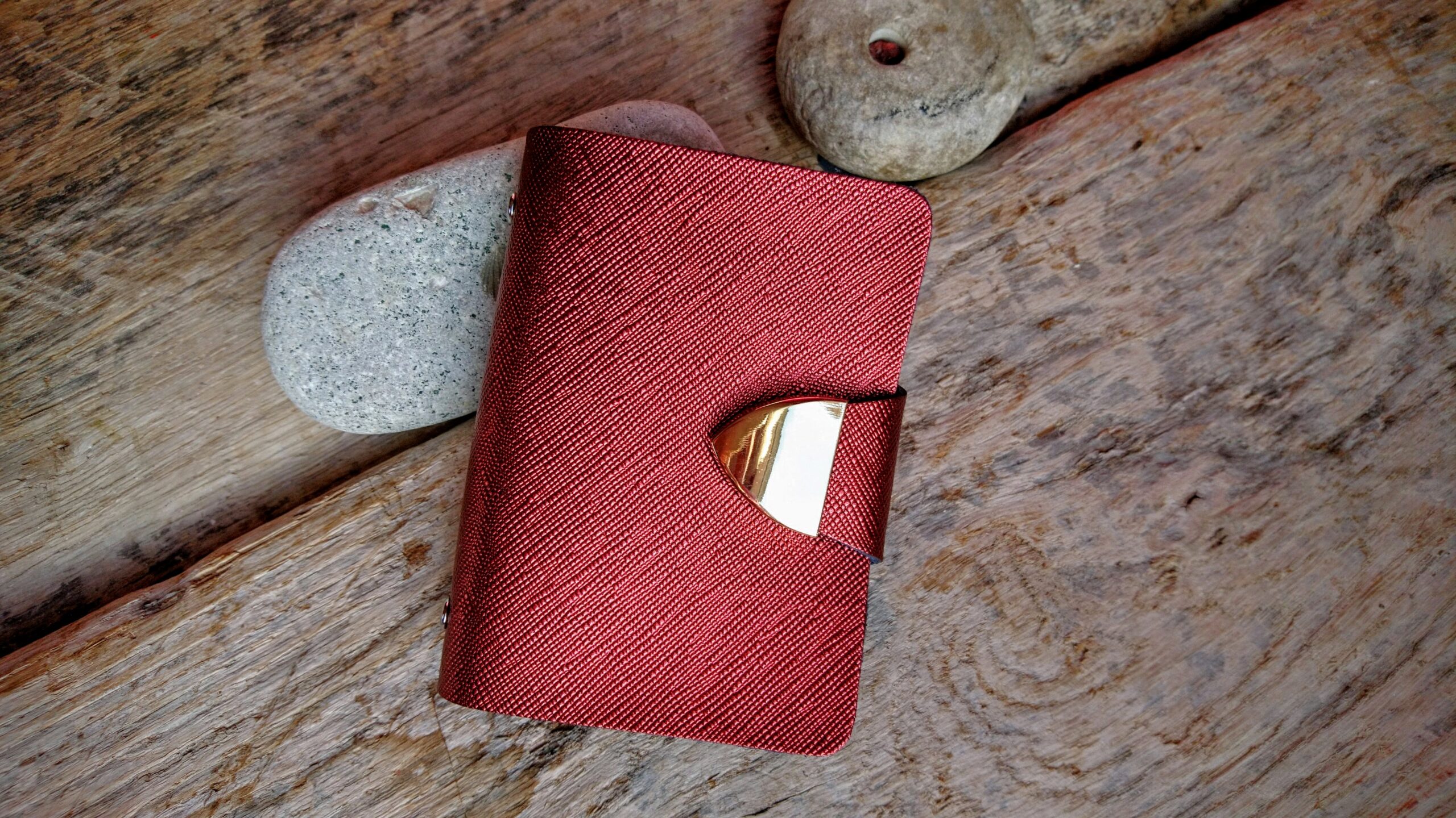 Täisnahast kaantega kaardihoidja kuldne, hõbedane või punane